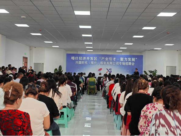 2025年9月5日下午,喀什经济开发区成功举办“产业引才·聚力发展”兴国时代(喀什)服装有限公司专场招聘会。本次专场招聘会旨在搭建纺织服装企业与广大就业人员之间的高效对接平台,既满足兴国时代(喀什)服装有限公司日益增长的用工需求,同时也为广大求职者提供丰富的就业岗位,助力区域纺织服装产业高质量发展。