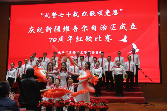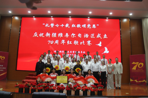 2025年9月30日,值此新疆维吾尔自治区成立70周年、中华人民共和国成立76周年之际,喀什经济开发区举办了“礼赞七十载 红歌颂党恩”歌唱比赛活动,部门、单位、企业共9支队伍300余名干部职工参加比赛,开发区有关领导出席活动并致辞。