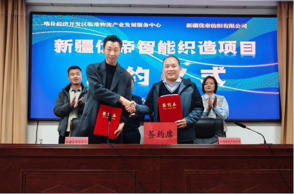 2月9日,在春节来临之际,喀什经济开发区临港片区成功与新疆优帝纺织有限公司正式签约智能织造项目,此次签约是临港片区围绕纺织服装产业定位、聚焦发展外向型产业开展精准招商的重要成果,对片区产业集聚升级、激活内生发展动力具有重要意义。