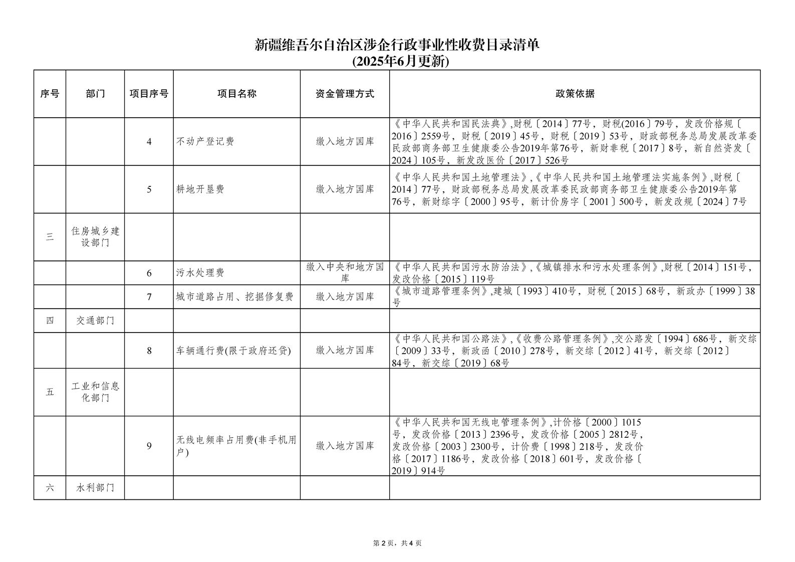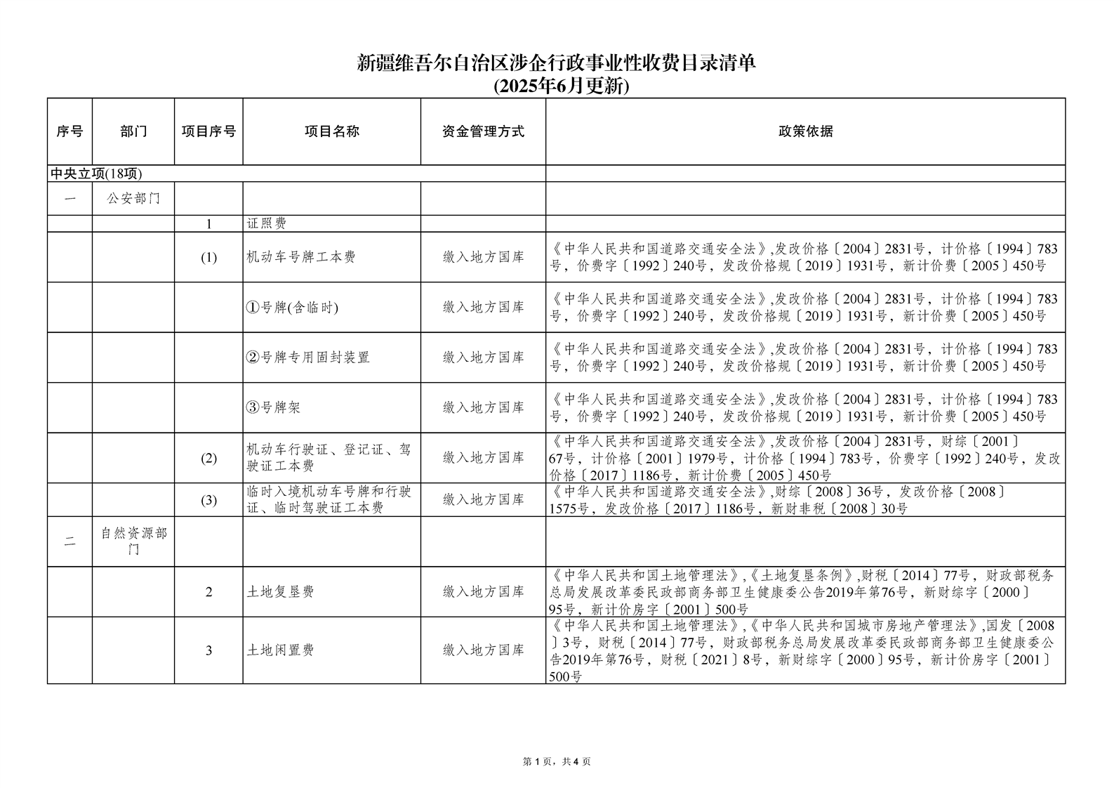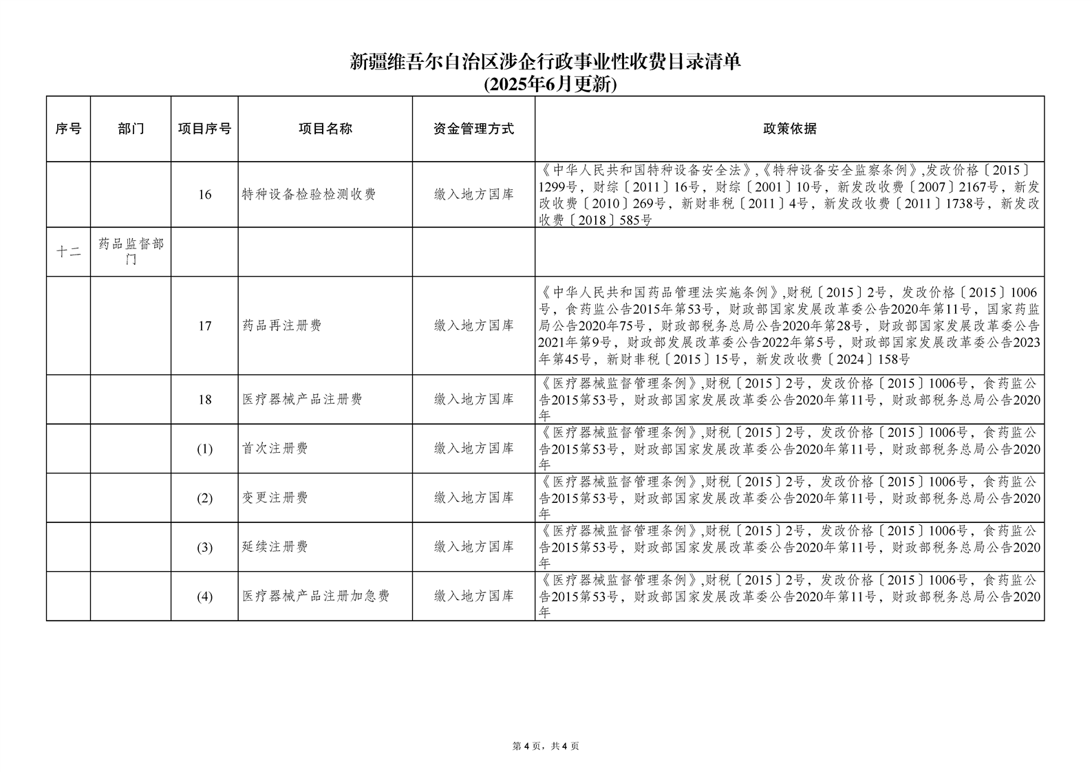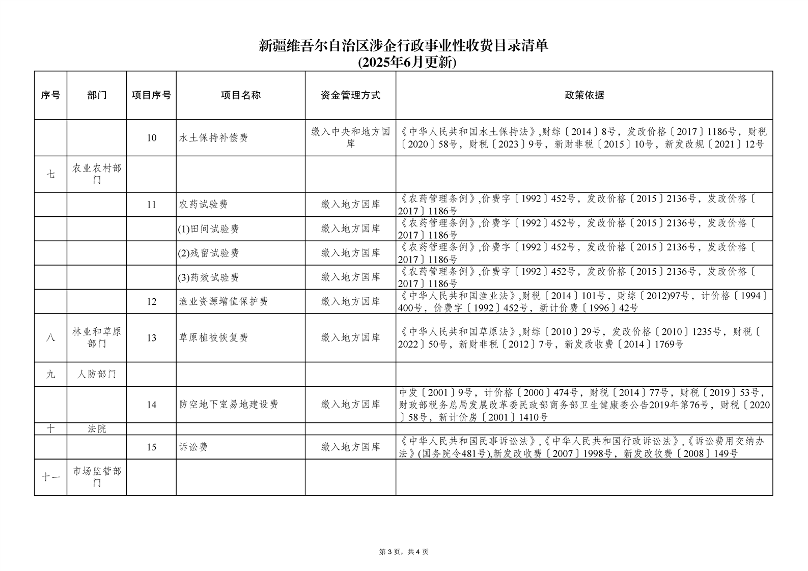 新疆维吾尔自治区涉企行政事业性收费目录清单(2025年6月更新)