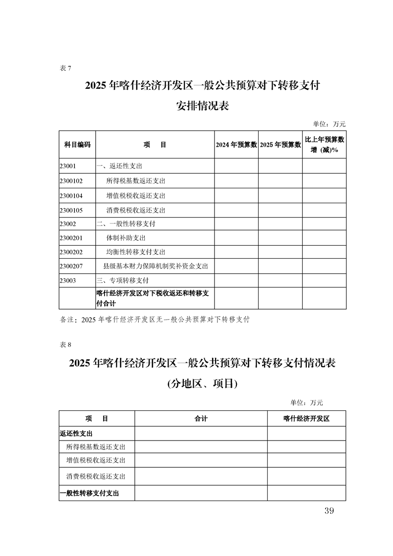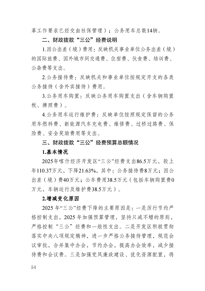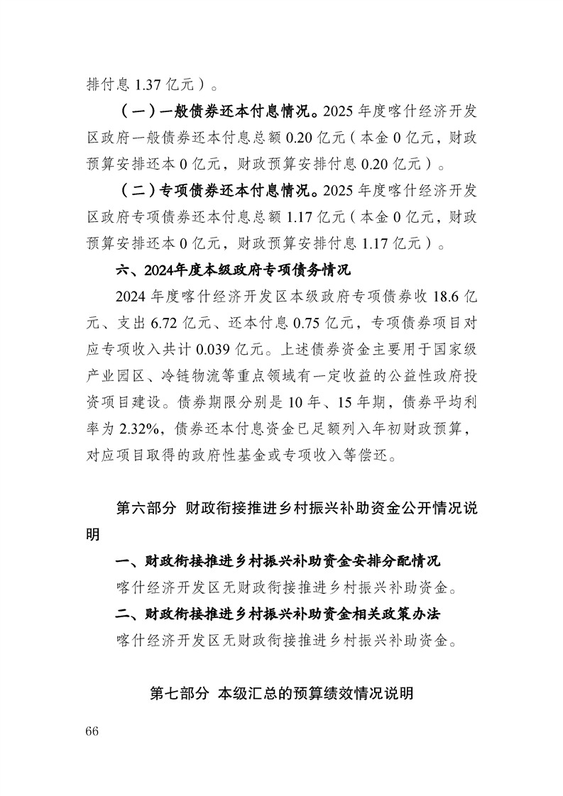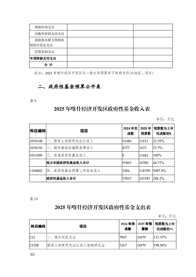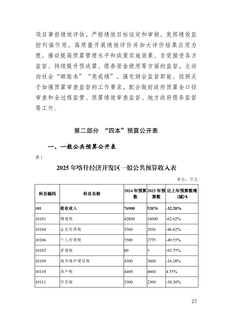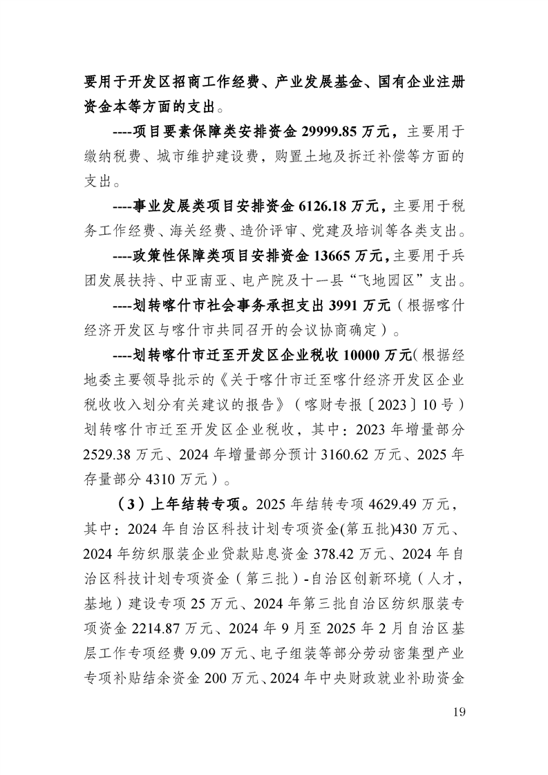 喀什经济开发区 2025 年政府预算公开