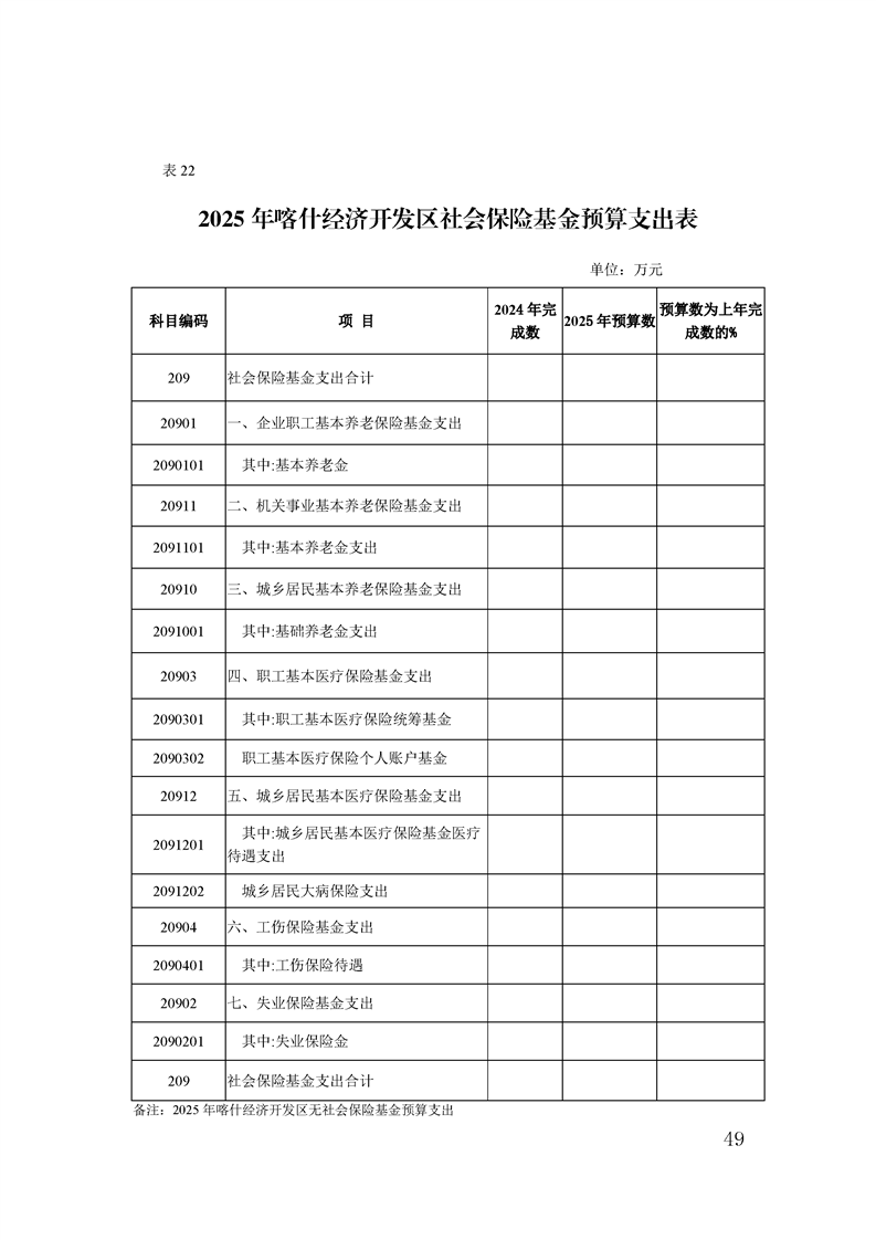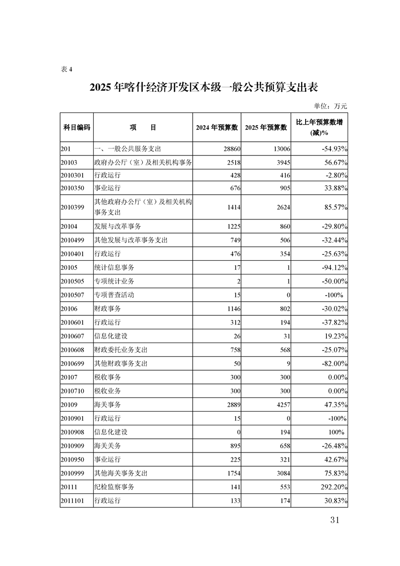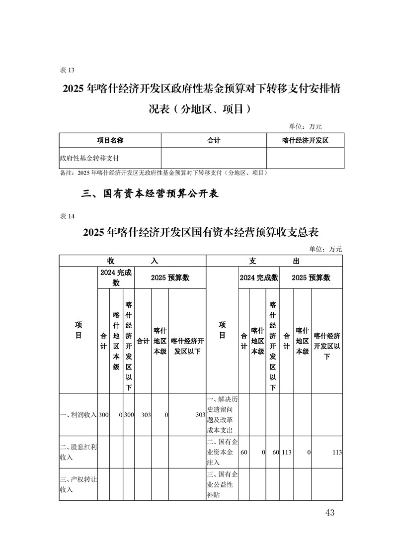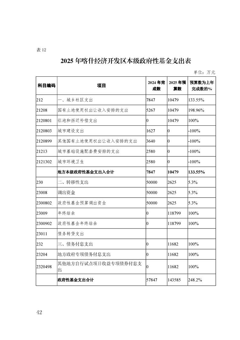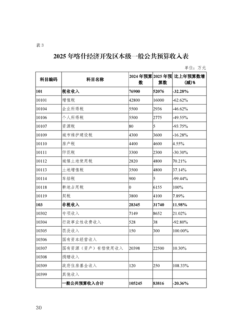 喀什经济开发区 2025 年政府预算公开