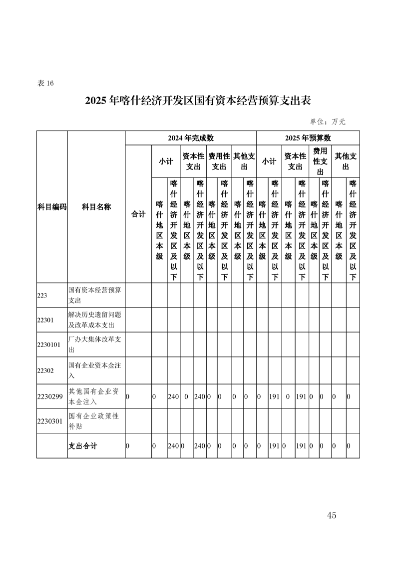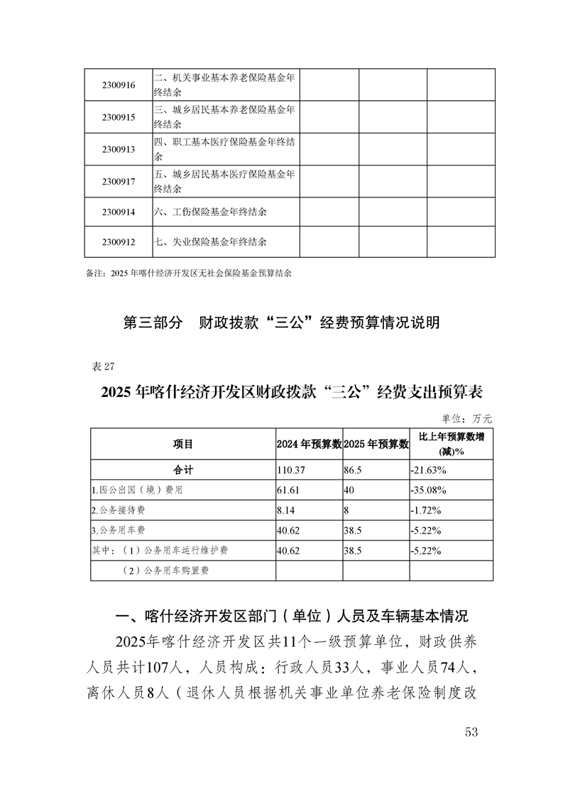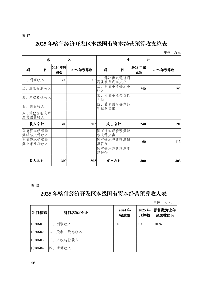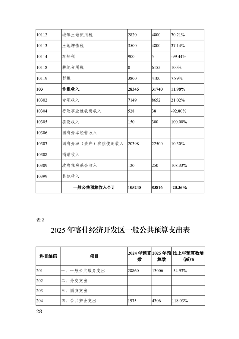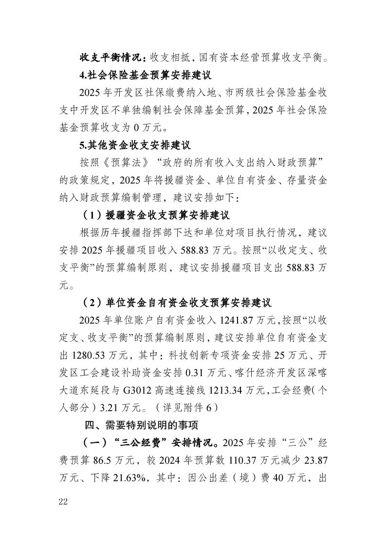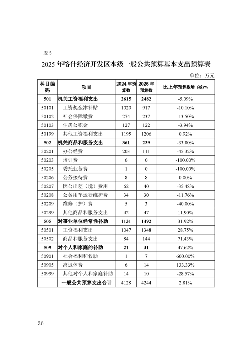 喀什经济开发区 2025 年政府预算公开