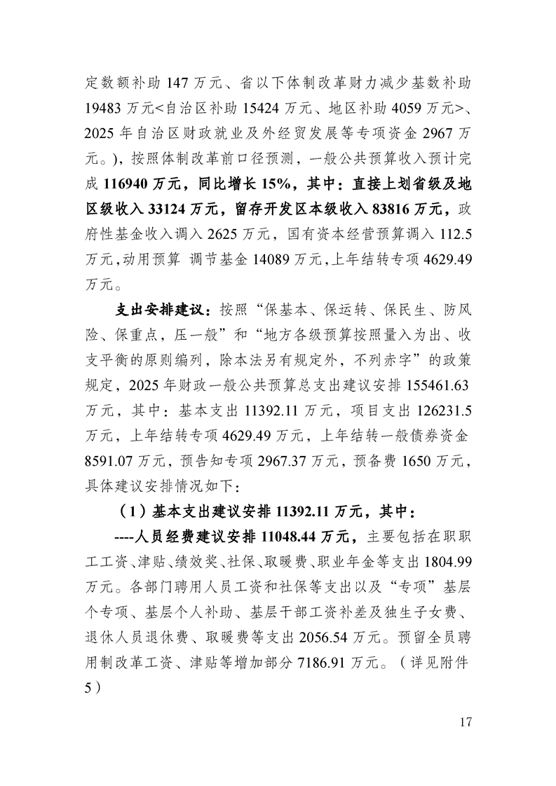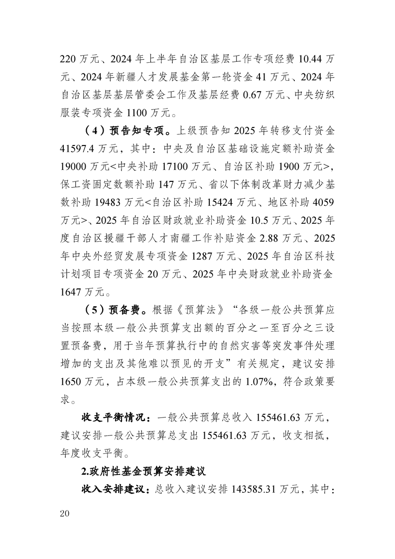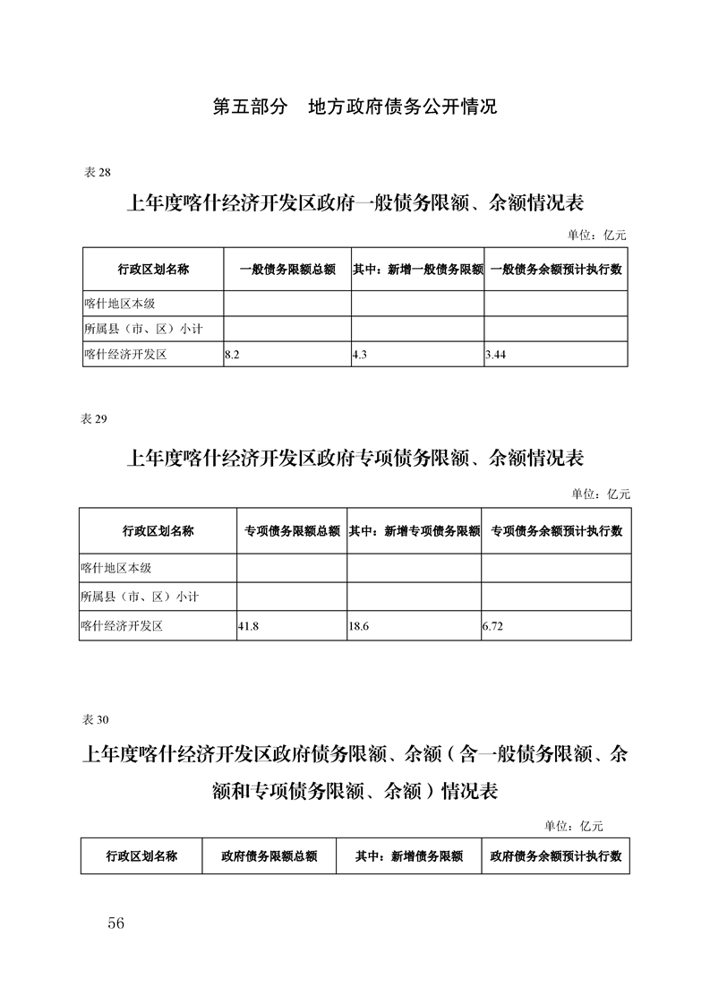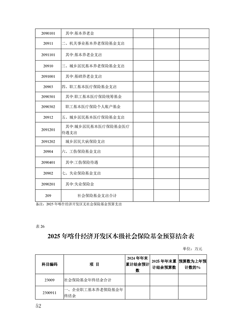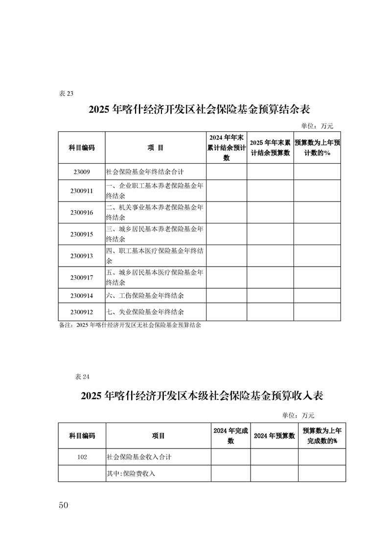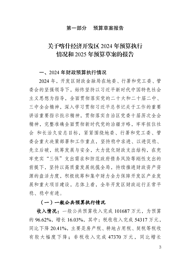 喀什经济开发区 2025 年政府预算公开